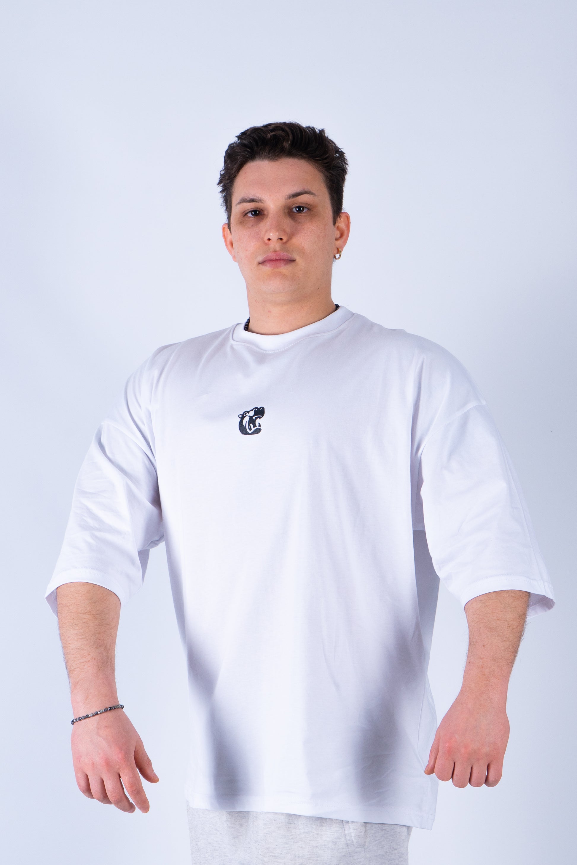 T-shirt oversize 100% cotone e 100% MADE IN ITALY, con grafica logo anteriore.